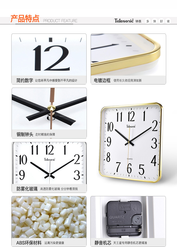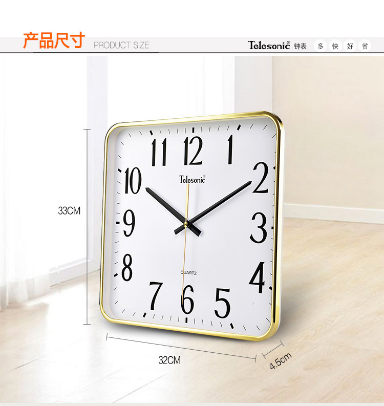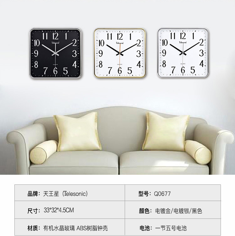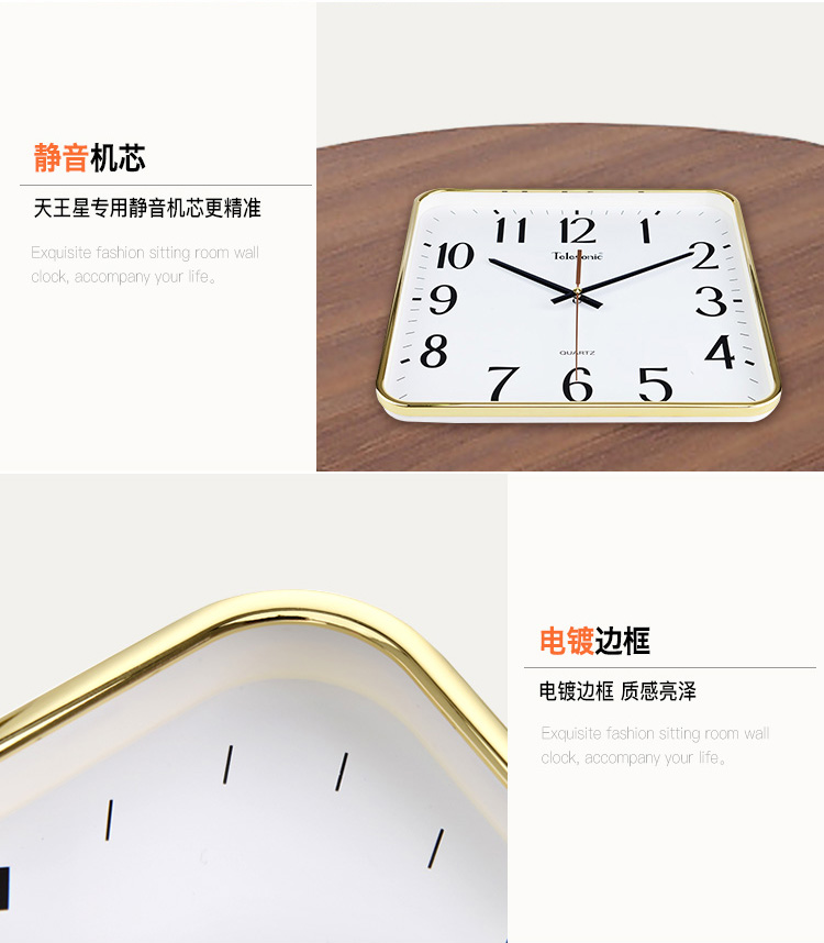 商品名称:天王星(Telesonic) Q0677-1 13英寸 静音石英挂表 电镀金