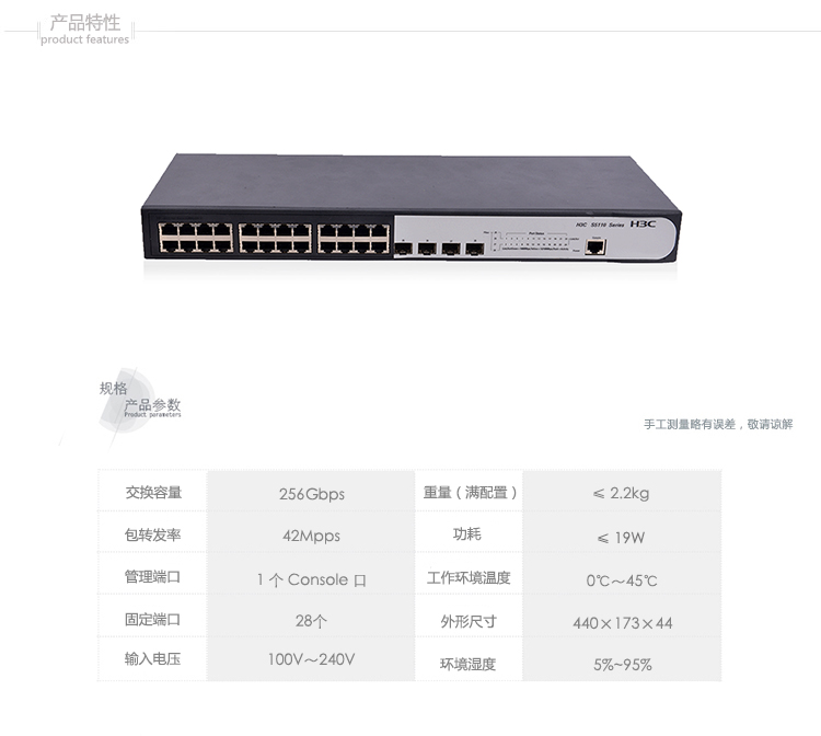 商品名称:华三 H3C S5110-28P-SI 全千兆以太网交换机