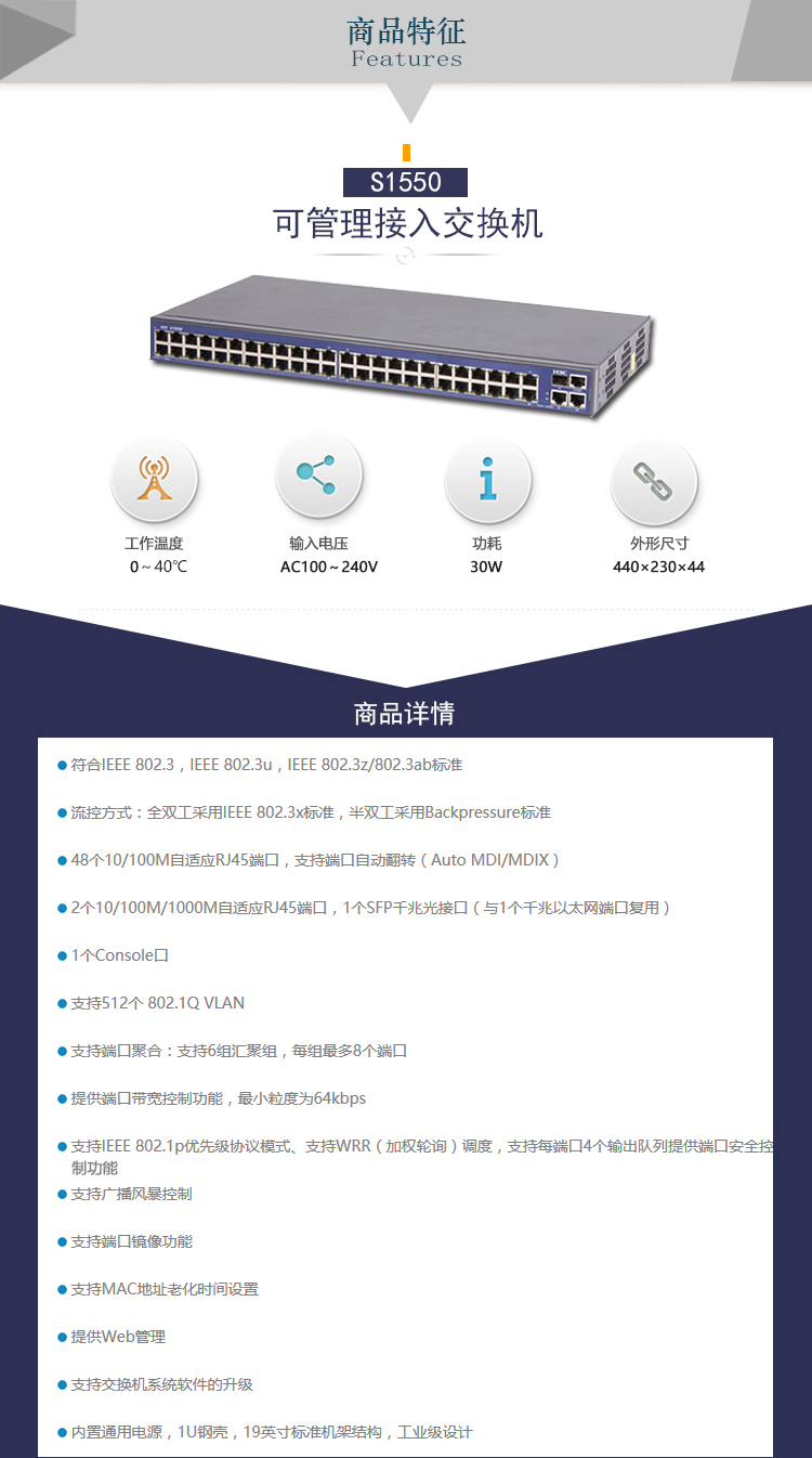 - 商品名称:华三 H3C S1550 可管理接入交换机
