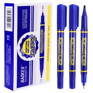 宝克(BAOKE)MP2906 小双头水性速干勾线笔 美术绘画勾线用笔 蓝色 12支/盒