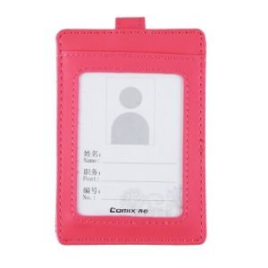 齐心 (COMIX) A7930 多彩竖式两用PU+布身份识别卡套/工作证/证件卡 粉红色