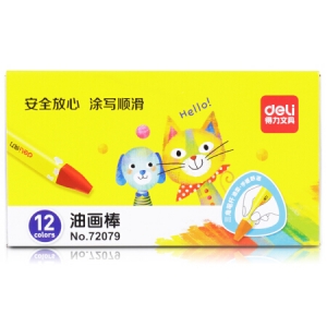 得力 (deli)72079 12色三角杆易上色油画棒 儿童蜡笔绘画笔 72079
