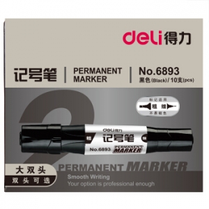 商品名称:得力 (deli)6893 双头油性记号笔 黑色 10支/盒 (计价单位:支)
