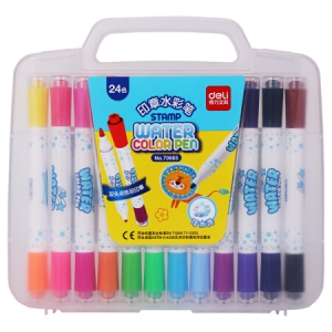 得力 (deli)70665 24色可水洗双头双印章双头水彩笔 24色/盒