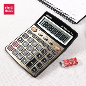 商品名称:得力(deli) 1560 语音计算器 12位多功能大屏计算器 金色