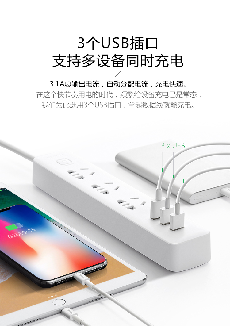 商品名称:公牛(BULL) GN-B403H 新国标公牛小黑USB插座( 3USB接口+3孔带保护门)长1.8米
