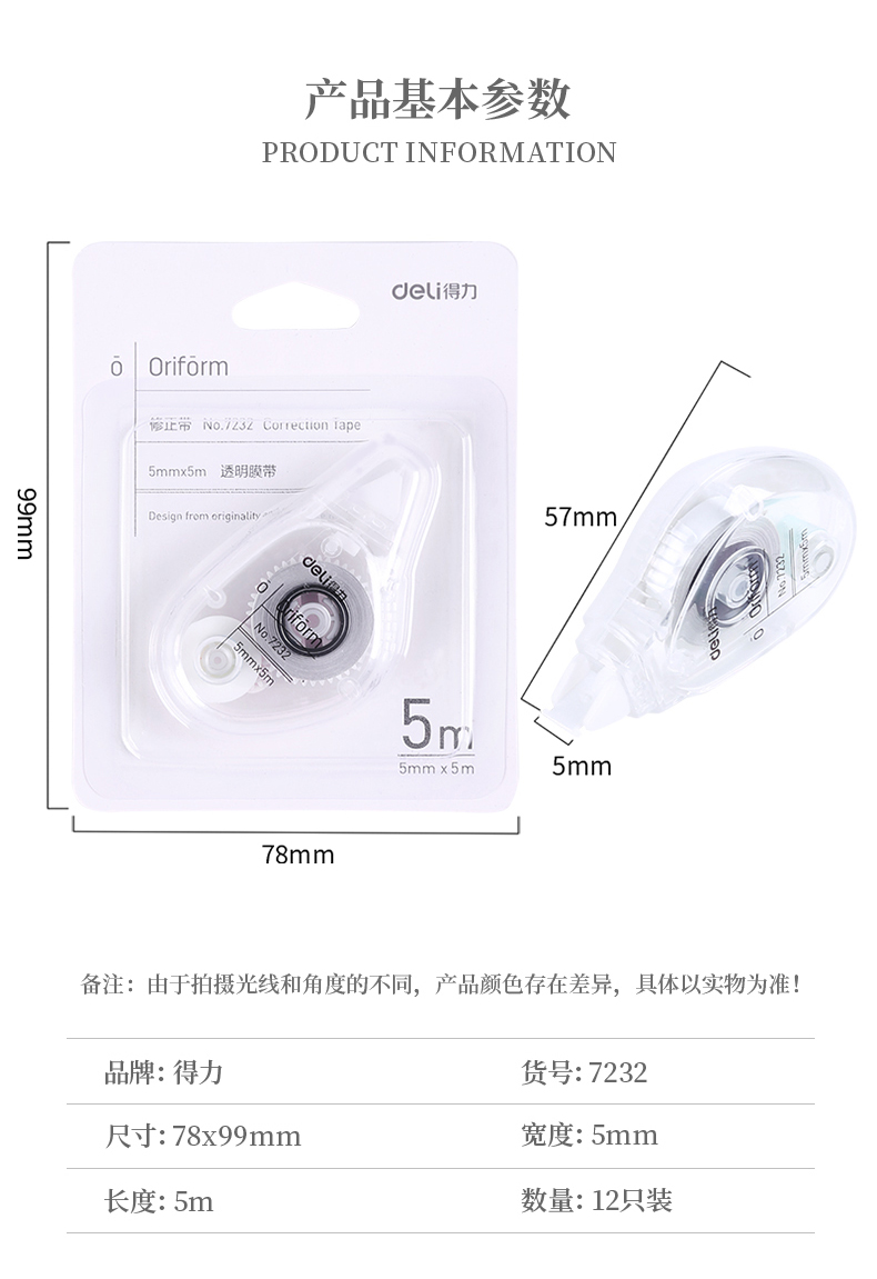 商品名称:得力 7232 修正带 (白色)