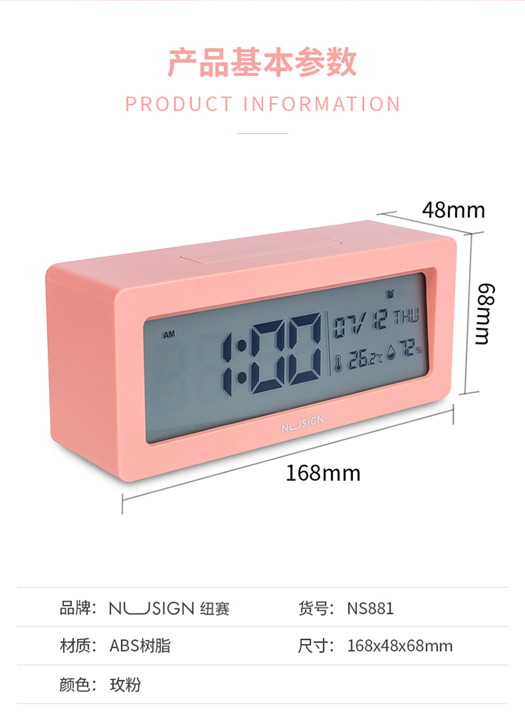 - 商品名称:纽赛 NS881 多功能电子钟(浅蓝)