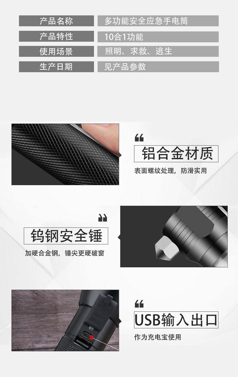 - 商品名称:鑫居安 多功能安全应急手电筒(充电型)