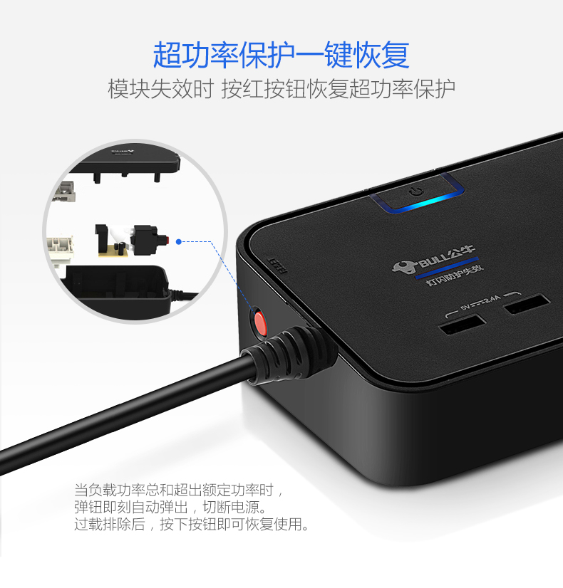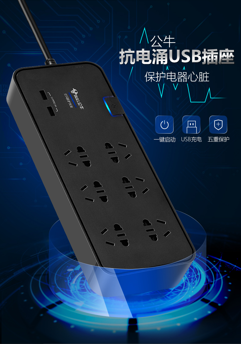 公牛(BULL) GN-410 4位3米 总控开关 插座