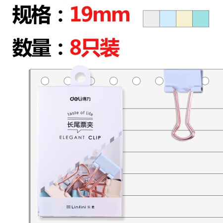 - 商品名称:得力 9422 长尾票夹(混)(4色/PET盒)