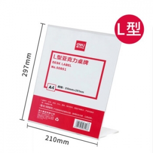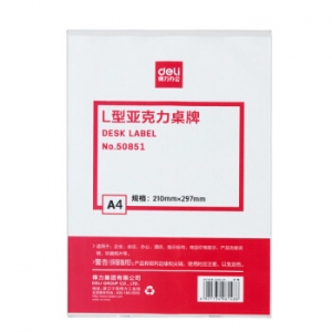 - 商品名称:得力 50851 L型亚克力桌牌(透明)
