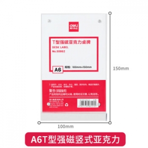 - 商品名称:得力 50862 T型强磁亚克力桌牌(透明)