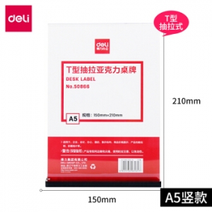 - 商品名称:得力 50866 T型抽拉亚克力桌牌(透明)