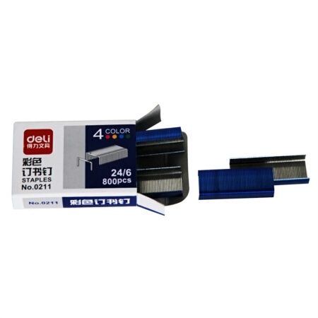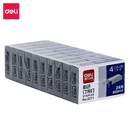 商品名称:得力 0211 彩色订书钉12#(混)(800枚/盒)