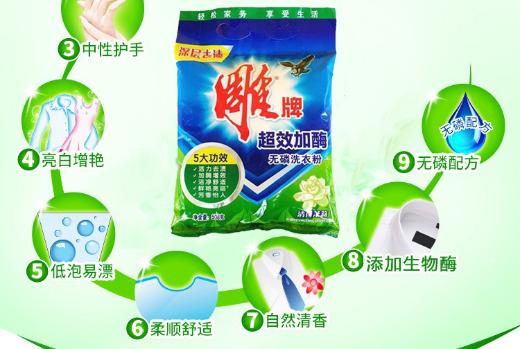商品名称:雕牌 508G 超效加酶洗衣粉 12袋/包
