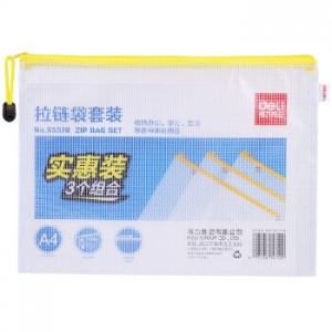 商品名称:得力 33378 拉链袋(黄)(3个/袋)