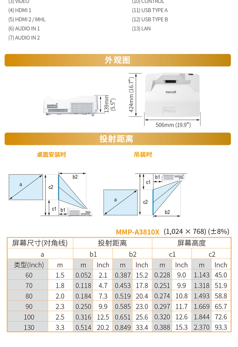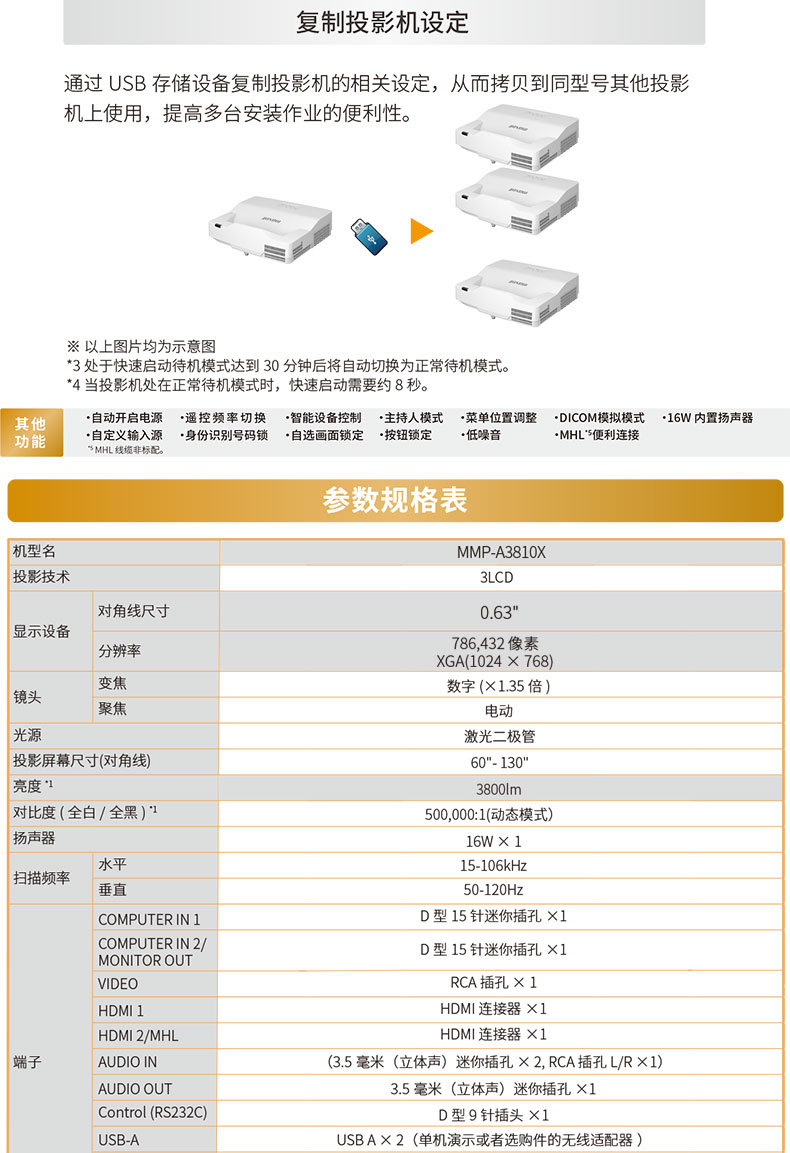 商品名称:麦克赛尔(Maxell)MMP-A3810X 反射短焦激光投影机(3800流明/XGA)
