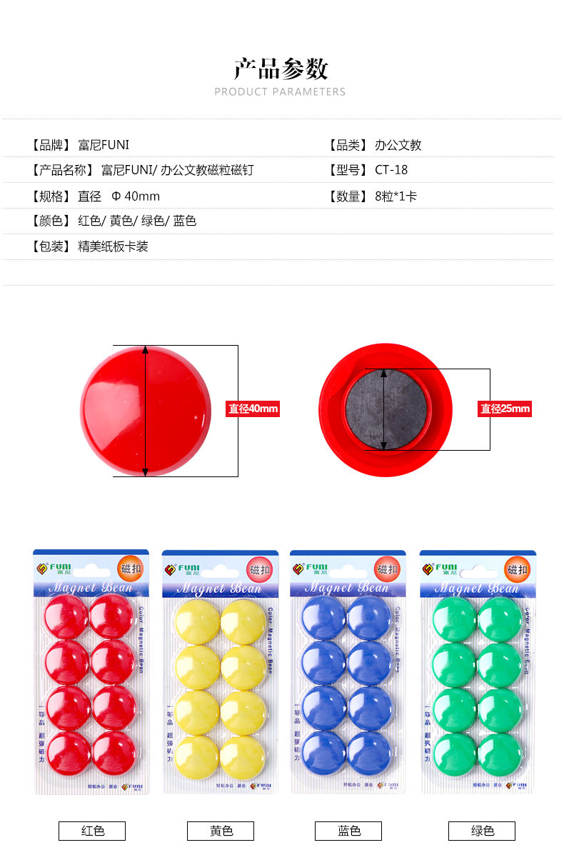 商品名称:富尼(FUNI) CT-18 圆形磁粒 40mm 红色 8粒/卡