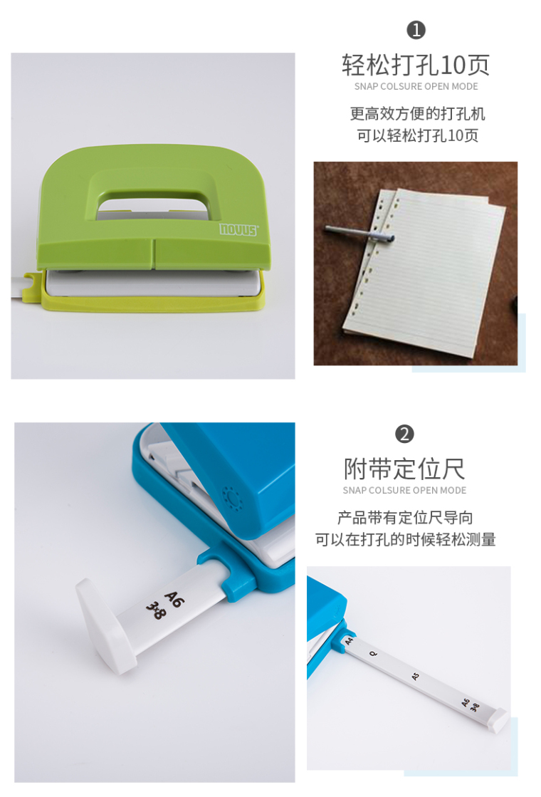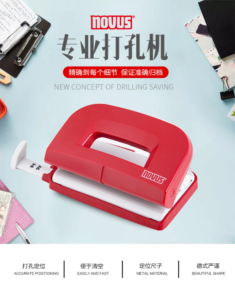 NOVUS罗福斯 创新系列 E 210 两孔多彩实用打孔机 红 可穿孔10页