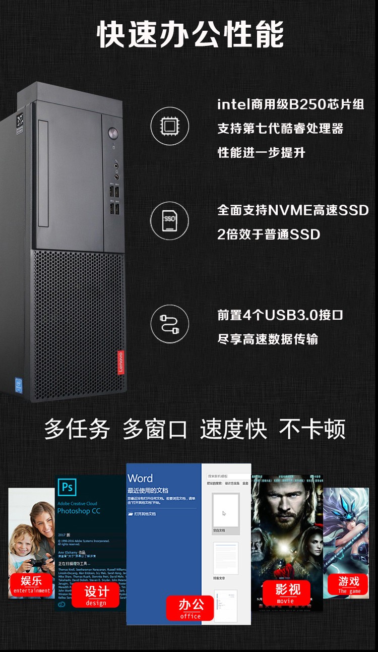联想(Lenovo)启天M410-D189 /i5-7500/B250/4GB/1TB/集显/DVDRW/DOS/3年保修/单主机