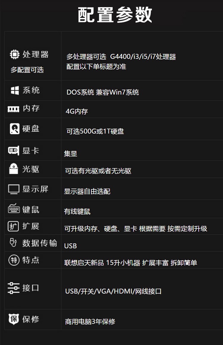 商品名称:联想(Lenovo)启天M410-D189 /i5-7500/B250/4GB/1TB/集显/DVDRW/DOS/3年保修/单主机