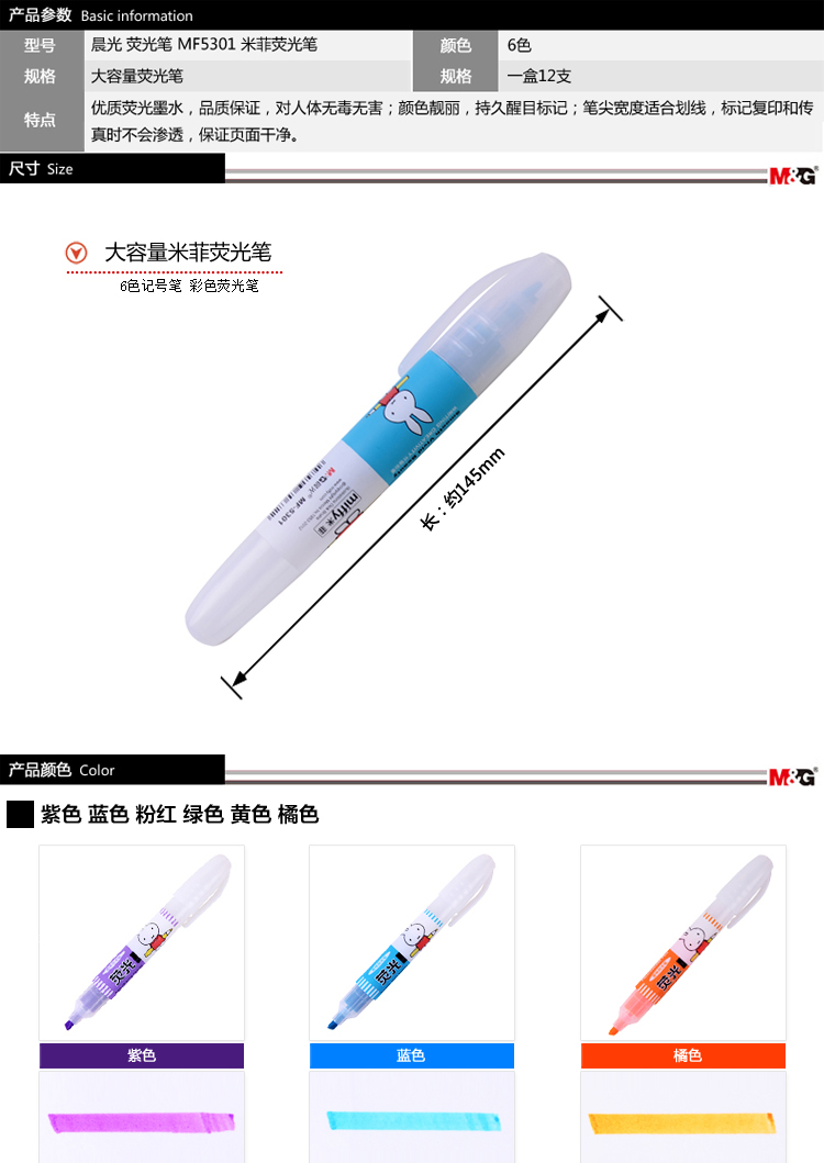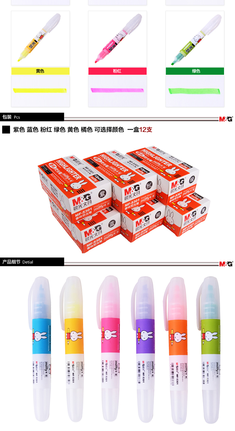 商品名称:晨光 MF5301 米菲荧光笔 12支/盒
