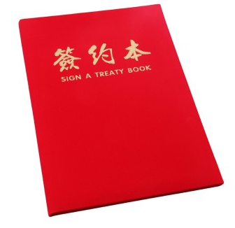 封面带金色凸起签约本,非常正式。