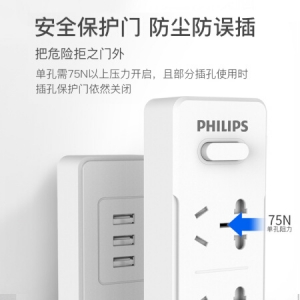 商品名称:飞利浦(PHILIPS)新国标3口USB总2.4A+3位1.8米插座 分控开关 保护门 插排插线板/拖接线板 SPS3312K/93