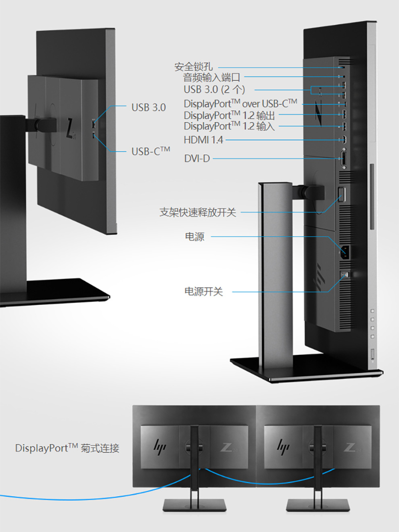 惠普(HP)Z24n显示器 24英寸 超窄边框IPS屏幕