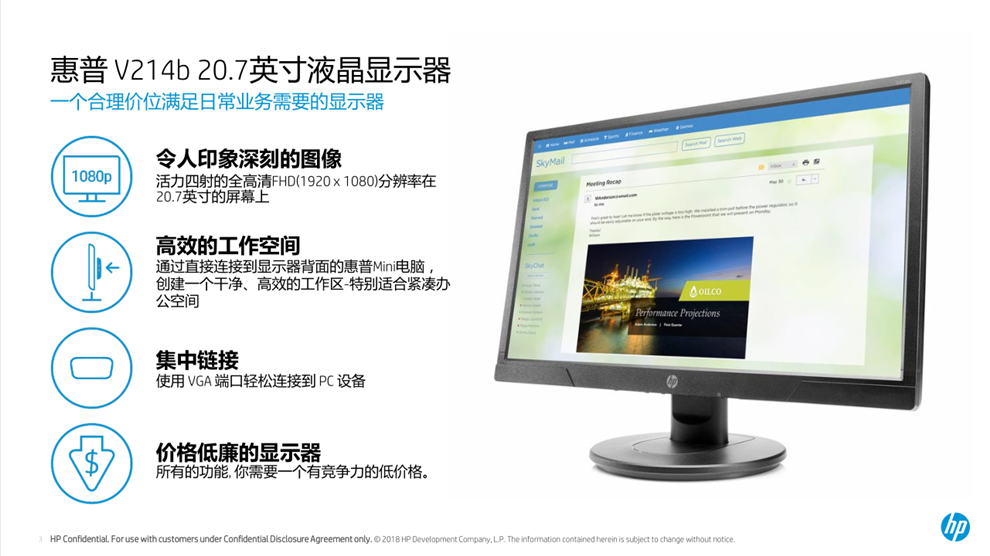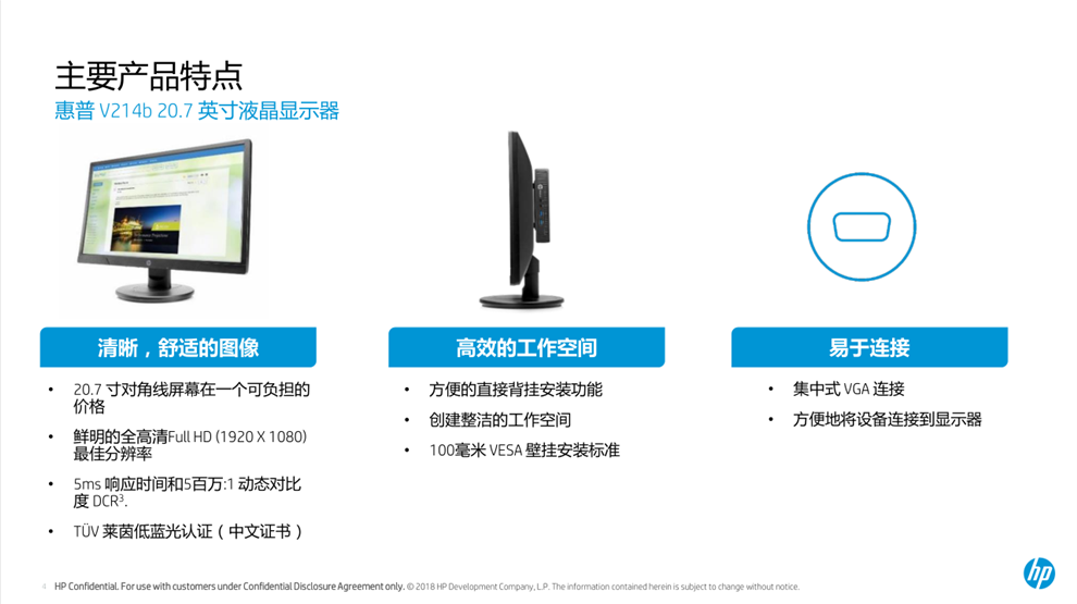 商品名称:惠普(HP)液晶 商用 高清 显示器 台式 工业制图 家用 显示器 显示屏 V214B 20.7英寸显示器