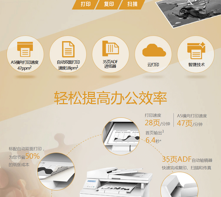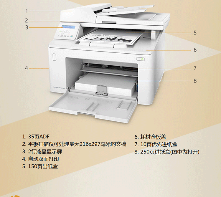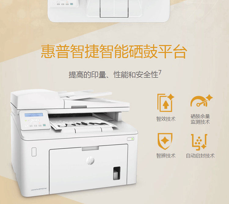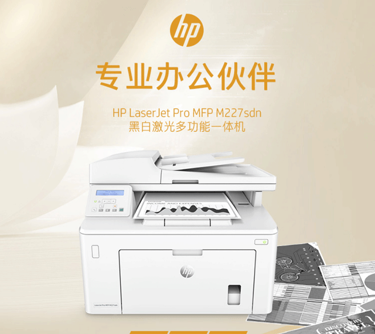 商品名称:惠普(HP)M227sdn 黑白激光一体机 A4幅面 打印/复印/扫描 打印速度28cpm 打印分辨率1200*1200dpi 扫描分辨率