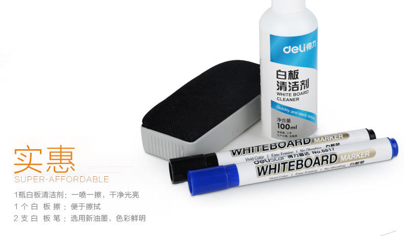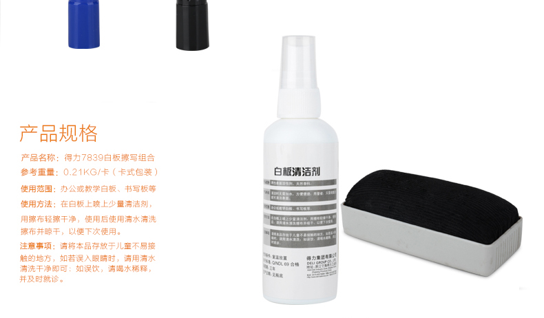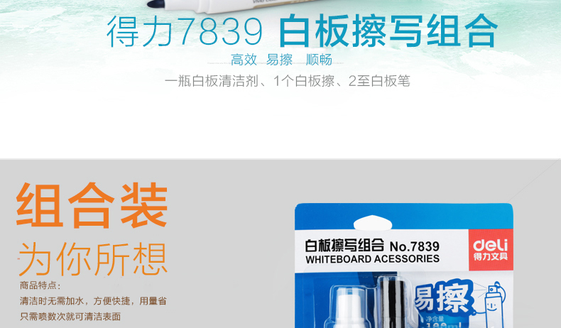 商品名称:得力(deli)7839 白板擦写组合 (清洗剂+板擦+白板笔) (计价单位:套)