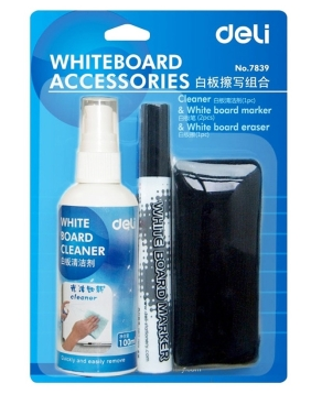 得力(deli)7839 白板擦写组合 (清洗剂+板擦+白板笔) (计价单位:套)