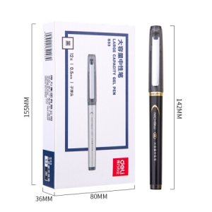商品名称:得力(deli)S33 0.5mm黑色碳素大容量中性笔 水笔签字笔12支/盒