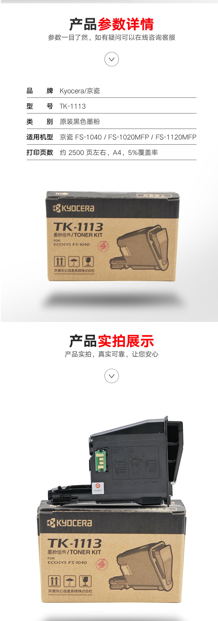 商品名称:京瓷 TK-1113 墨粉盒 适用于:京瓷1020/1040/1120黑色(TK-1113)
