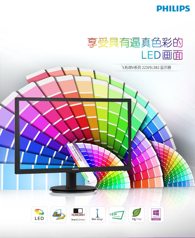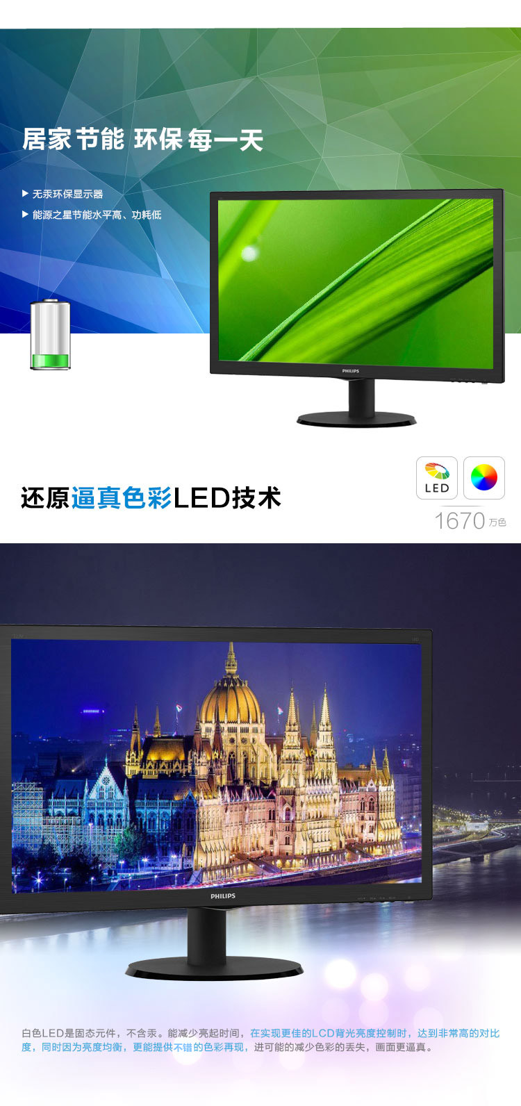 商品名称:飞利浦(PHILIPS) 223V5L 21.5英寸液晶显示器 双接口 办公组装电脑显示屏 223V5LSB