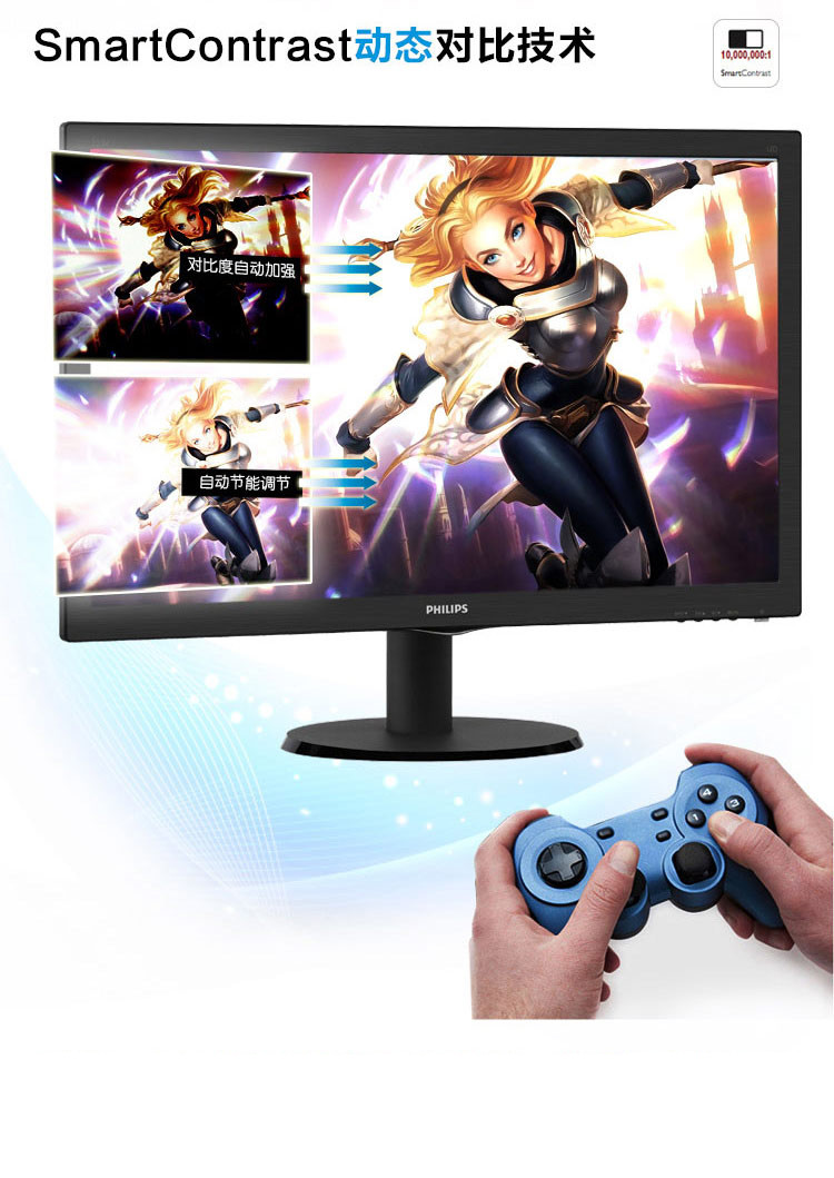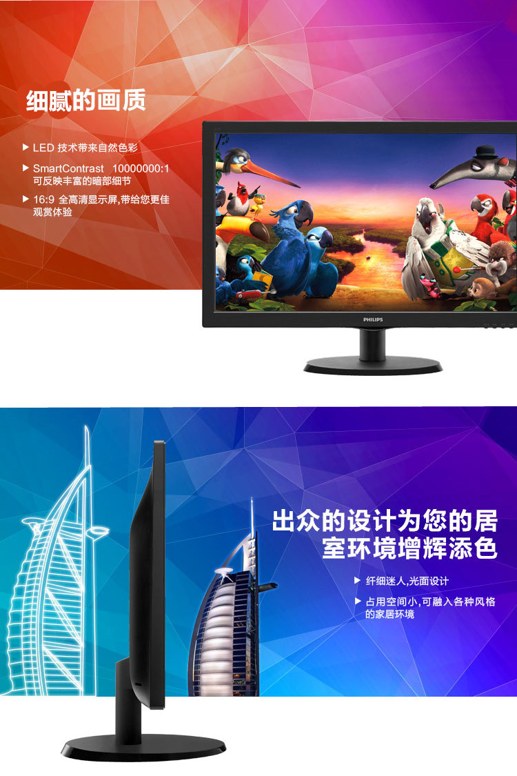 飞利浦(PHILIPS) 223V5L 21.5英寸液晶显示器 双接口 办公组装电脑显示屏 223V5LSB