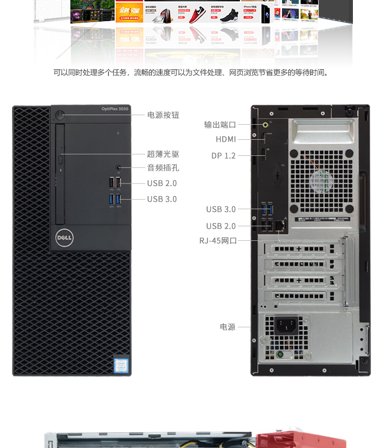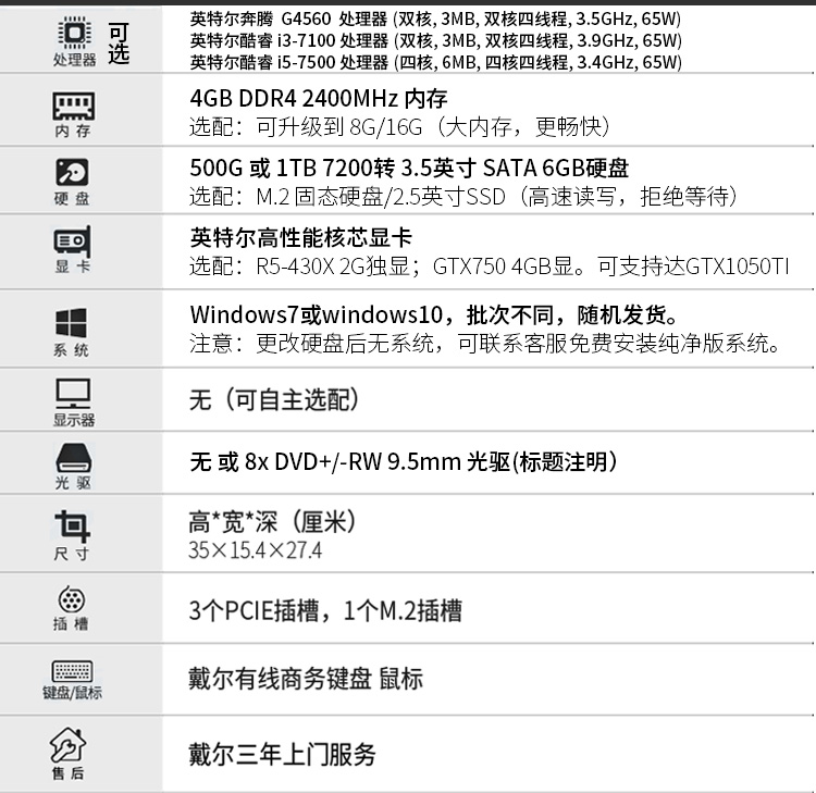 戴尔(DELL)OptiPlex 3050 Tower 001618 台式计算机 I5-6500/B250/4G/1T/集成/集成/DVDRW /3年保修
