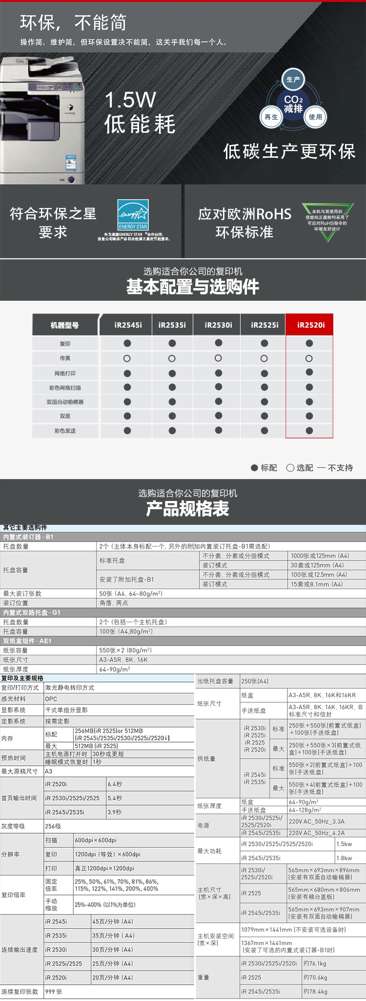 - 商品名称:佳能(CANON)iR2520i A3黑白数码复合机