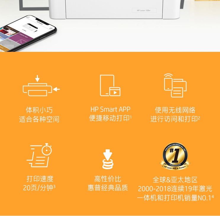 - 商品名称:惠普 (HP) 激光打印机(Laser 108w)(A4黑白 锐系列)