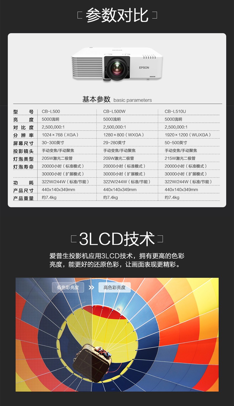 商品名称:爱普生(EPSON)CB-L500W激光投影仪