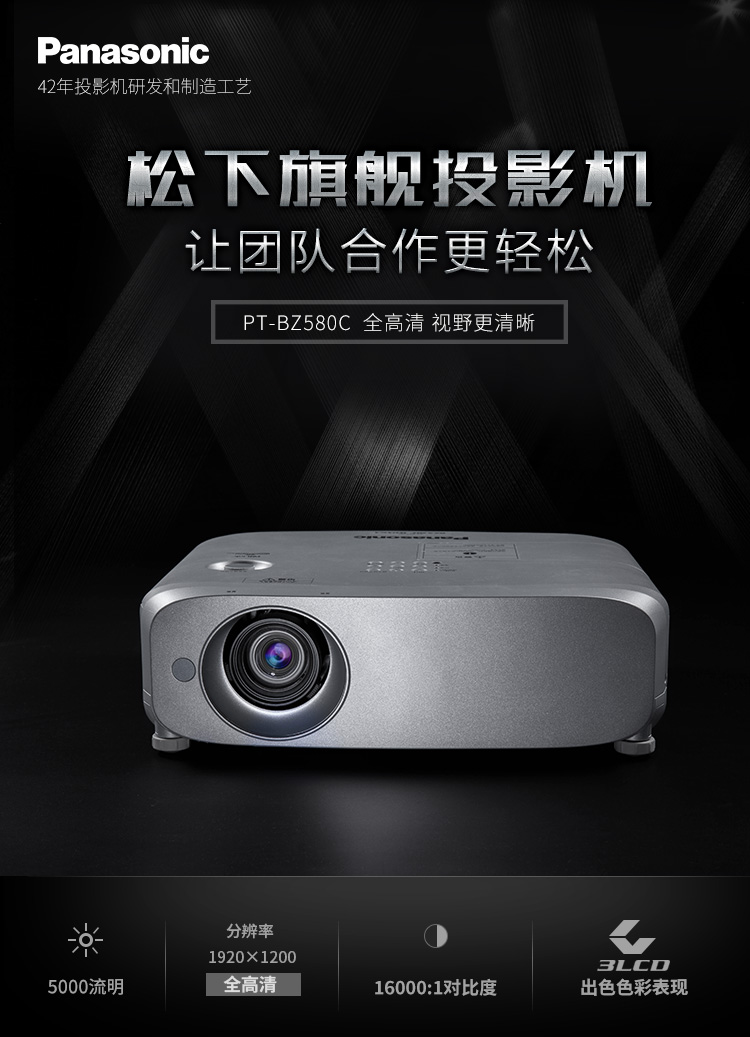 商品名称:松下(Panasonic)PT-BZ580C 投影仪办公 工程高端高清投影机 (5000流明超清)