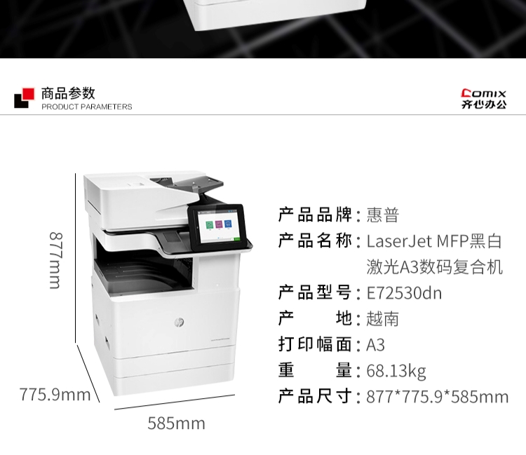 商品名称:惠普 LaserJet Managed Flow MFP E72530dn 管理型数码复合机