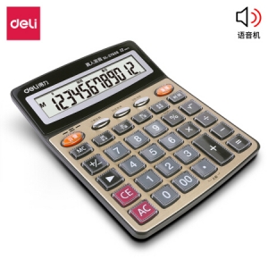 商品名称:得力 (deli)27559 大屏金色面板语音计算器 12位显示真人语音计算机