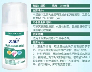 - 商品名称:久朋 免洗手消毒凝胶 75 ML