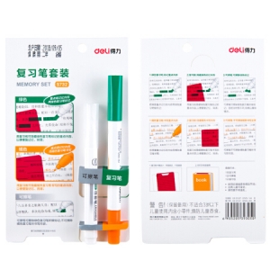 得力S732复习笔套装(混)(2支/盒) 绿橙双头复习笔+消失笔+遮光片
