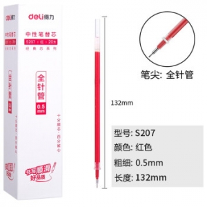 得力 S207 中性笔替芯 0.5mm全针管(红) 20支/盒