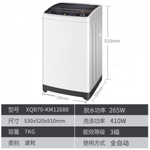 - 商品名称:海尔(Haier)XQB70-KM12688 7公斤全自动波轮洗衣机 节能静音 漂甩二合一智能预约