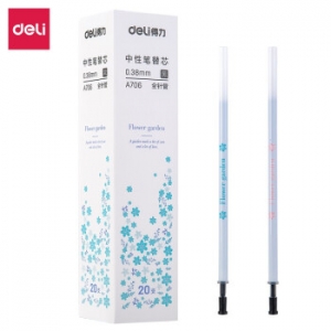 得力 A706 中性替芯0.38mm全针管(黑) 20支/盒